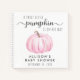 Cute baby girl shower guest book featuring a pastel pink watercolor of a pumpkin and "A Sweet Little Pumpkin Is On Her Way" written in a mix of soft grey typography and a stylish script with swashes.