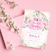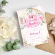 The Pink Pumpkin Floral Baby Shower Invitation is the perfect way to set the tone for your upcoming baby shower. The invitation features a beautiful watercolor design of a pink pumpkin surrounded by delicate floral arrangements and a fancy arch golden frame. The elegant and feminine design is perfect for welcoming a baby girl into the world!