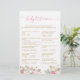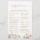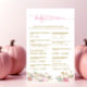 ANSWER KEY: 1-d, 2-b, 3-a, 4-c, 5-c, 6-a, 7-d, 8-c, 9-c, 10-b. The Pink Pumpkin Flowers Baby Trivia Game is a tender embrace of all things sweet and charming, designed to foster an emotional connection with families eagerly anticipating the arrival of their little one. Capturing the essence of a baby girl shower with hues of pink, the item celebrates the joy and excitement of this special occasion. Golden glitter accents add a touch of sparkle and magic to the item, elevating its appeal and lending a hint of glamour to the celebration. Modern script typography gracefully adorns the design, conveying warmth and affection with each stroke. Matching items are available.