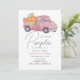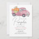 This cute vintage, and rustic "little pumpkin" girl's 1st/first birthday invitation features a pink truck filled with pumpkins and flowers. The reverse side features a white background with pink gingham check patterns. Personalise for your needs. You can find more matching products at my store.