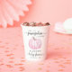 These cute baby girl shower paper cups feature "A Sweet Little Pumpkin Is On Her Way" written in a mixture of modern soft grey typography and stylish script and a cute pastel pink watercolor of a pumpkin. Underneath, "baby shower" is written in the same stylish script and you can easily personalise the mother-to-be's name and shower date in modern and handwritten-like typography.