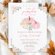 This cute and whimsical watercolor baby shower invitation features pastel pink pumpkins and beautiful floral arrangements. The text combines handwritten script and sans serif fonts for a stylish and modern look. This is perfect for an autumn fall baby shower.