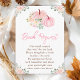 This cute and whimsical watercolor book request enclosure card features pastel pink pumpkins and beautiful floral arrangements. The text combines handwritten script and sans serif fonts for a stylish and modern look. This is perfect for an autumn fall baby shower.