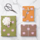 Pink Pumpkins on Mocha Green and Orange Wrapping Paper Sheet
