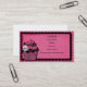 designed in pink back ground with a white punk skull bone attached to a pink and black cupcake.
