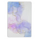 An abstract design featuring delicate wisps of pink, purple and blue alcohol ink on an off-white/pale grey background, offset by a metallic gold overlay. Personalise with an initial.