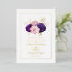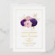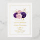 Elegant pink and purple flower online long-distance wedding invitation with gold foil accents and a vintage calligraphy reverse customisable to your event specifics.