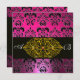 PINK PURPLE BLACK DAMASK MONOGRAM ,gold Invitation