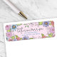 This customisable return address label is a harmonious blend of elegance and vibrancy, designed to add a touch of personality to your mail. The background is a soft, light pink that serves as a canvas for the beautifully illustrated flowers. These flowers bloom in shades of pink, purple, and blue, creating a delightful bouquet of colours. Intertwined with the flowers are green leaves and vines, offering a natural contrast and enhancing the intricate floral pattern.