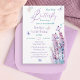 This invitation embodies an extraordinary tenderness, elegance, and delicacy. It features a watercolor depiction of a lavender bush, beautifully capturing its essence. Adding to its charming allure, delicate butterflies in shades of soft purple, blue, and pink gracefully adorn the design. The invitation is completed with an elegant font that harmoniously blends with this light and refined composition.