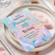 You are cordially invited to a pink, purple, and blue mermaid party in honour of Penelope's 2nd birthday! We will have a splash-tastic time with mermaid-themed activities, snacks, and decorations!