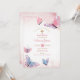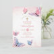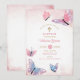 Pink Purple Butterfly Girl Baptism Gold Cross Flowers Invitation