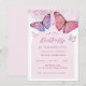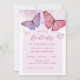 Pink Purple Butterfly Girl 5th Birthday Party Invitation