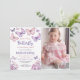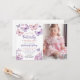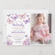 Pink Purple Butterfly Girl First Birthday Photo Invitation