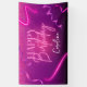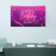Modern and ultra festive Happy Birthday banner featuring pink and purple confetti, curled pieces of pink and purple ribbon and pink neon lights. Background features a modern pink to purple to black gradient. Personalise with name and let's get the party started!