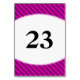 This table card features diagonal pink/purple stripes, and a customisable table number within a splatter-like shape.