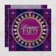 Sun Sparkle Dinner Party Invites. Purple pink and indigo blue light energy geometric design pattern with gold sun energy with fully customisable text. Write all your event info on the back ~ where the design is also found in a complimentary layout.