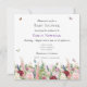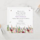 Feminine and classic, this baby shower invitation features a lovely design of watercolor pink and purple flowers including roses, tulips, lavender and eucalyptus greenery with bright coloured butterflies and bumble bees flying around.