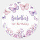 Pink Purple Floral Butterfly Girl 1st Birthday Classic Round Sticker