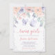 Pink Purple Floral Butterfly Twin Girl Baby Shower Invitation