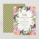 Pink and purple watercolor floral and sage and olive green leaves on white 80th birthday party invitation for women. The back of this card has olive green and white stripes. Contact us for help with customisation or to request matching products.