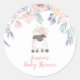 Pink Purple Floral Lamb Girl Baby Shower Classic Round Sticker