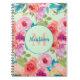 Cute and girly spiral notebook with pink and purple watercolor flowers and teal leaves on a mint green background. Personalise with your monogram/initial and name.