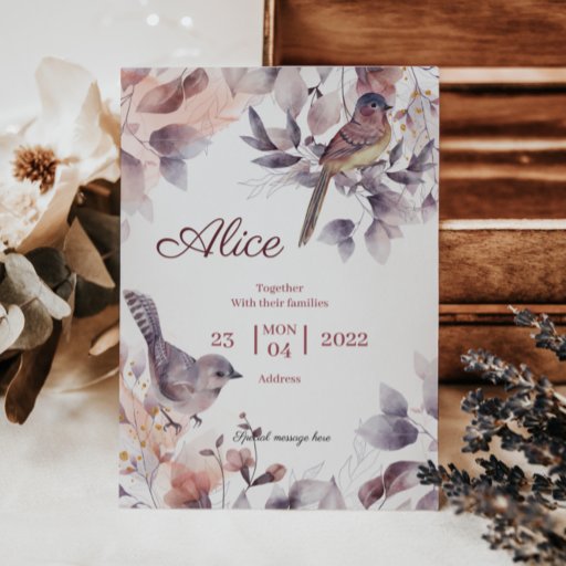 Pink Purple floral with Birds baby shower Invitation