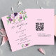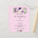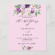 A pink background. Decorated with purple watercolored flowers and greenery. Personalise and add your names and party details.