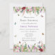 Feminine, summery and classic, this baby shower invitation features a lovely garden of pink and purple watercolor flowers with butterflies and bumble bees flying around.