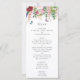 Pretty, summery and classic, this wedding day menu card features a lovely design of pink and purple flowers with butterflies and bumble bees flying around.