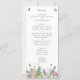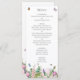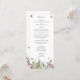 Pretty, summery and classic, this wedding day menu card features a lovely design of pink and purple flowers with butterflies and bumble bees flying around.