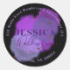This is a customisable round address label that exudes a sense of elegance and mystique. The design features a captivating pink/purple galaxy theme, with a backdrop of faux foil stars scattered across a deep purple sky, reminiscent of a starry night. This celestial theme adds an enigmatic beauty to the label, making it stand out. The address is displayed in a clear, legible font along the curve of the circle. The light purple text contrasts well against the dark background, ensuring readability. The central area of the label provides a space for personalisation or additional text. This label is a perfect blend of style and practicality, adding a touch of sophistication to your mail. Whether you’re sending out invitations or simply mailing a letter, this label is sure to leave a lasting impression.