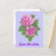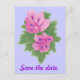 Pretty artwork of pink and purple geraniums, with leaves, and Save the date, is printed on custom postcards. The text can be easily customised on the template forms. Be sure to customise both sides. There are matching items in this store. Thank you for shopping CherylsArt on Zazzle.