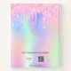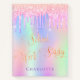 A trendy holographic coloured background with unicorn and rainbow pastel colours in pink, purple, rose gold, mint green. Decorated with faux glitter drips in rose gold, pink and purple. Personalise and add a name. Golden text: School, work, study