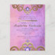Elegant and stylish personalised Quinceañera invitation postcard design featuring a stylised faux gold glittery jewelled tiara on a pink/purple grunge background.