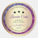 Make a lasting impression with this elegant gold effect design featuring a glamourous round pink purple gradient faux glitter border with luminous sparkle stars.