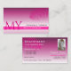 YOUR FAVORITE - Make a lasting impression with this elegant and eye catching business card design featuring a cute palm leaf on pink purple gradient background, with monogram and (employees-) photo.