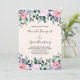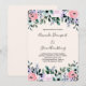 A wedding invitation with a pretty floral design made with watercolors. Pink, purple and green garden flowers.