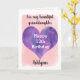 A pretty pink and purple 13th birthday granddaughter card that features a watercolor purple heart against a pretty pink watercolor, which you can personalize underneath the purple heart with her name. The inside of this 13th birthday card reads a sweet sentiment for your daughter, which an be easily personalized. The back features the watercolor purple heart along with Happy Birthday, which you can change as well. This would make a pretty keepsake for any birthday girl.