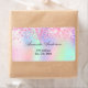 A trendy holographic background with unicorn colours and rainbow colours in blush pink, purple, mint green. Decorated with confetti, sparkles. Personalise and add your name and return address.