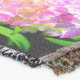 A quality printed throw has its advantages. This is a much finer weave throw than its loopier cousins, and though lighter, it is worth the investment for custom room accessorizing. The back is much prettier than the typical brown, and the fringe on the long sides very vivid, the selvage nicely done. Before photographing, I washed the throw in cold water, delicate, with a thicker woven throw the same size. On tumble dry low, this throw was dry in half the time as the other. This is a very practical quality if you use throws for furniture covers or to wrap up in frequently. The sleekness of the fabric makes it a great layer for accenting or protecting without the feeling of sitting on too much stuff. Perfect for napping or when you feel a light chill coming on. The color printing is beautiful and on this fabric, matched the design and color of my Photoshop image. This is an advantage for blending room fabrics and colors. The fringe on the short sides prints the colors from the design image and therefore varies from the side fringe. I streaked a white fractal line through the plaid pattern to give the illusion of weaving. This printed as crisp as an illusory thread, and put some white in the short side fringe, showing another advantage of print vs loomed- for artistic purposes, line lines, detail, and color integrity can be planned and preserved. My loomed throws have color limitations and more of a needlepoint texture. Print throws reproduce an exact image. The throw felt a little stiff straight out of the package, but this went away in the first delicate wash. Of course I searched the wash water for ink or bleeding and there was none.