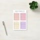 Post-it notepads, personalised with your name, for to do lists and daily organising with four categories: asap, soon, later, whenever. Pink, peach, yellow, purple. A practical, clean look.