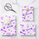 Pink Purple Paw Prints Watercolor Birthday Wrapping Paper Sheet