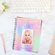 A rainbow coloured background in purple, pink with elegant pink and purple drips, paint dripping look. Personalise and add your own photo, name and a year. The name is written in grey with a large modern hand lettered style script with swashes. To keep the swashes only delete the sample name, leave the spaces or emoji's in front and after the name. Perfect for school, work, business or organising your personal/family life.