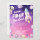 Pink Purple Planet Space Girl's 4th Birthday party Invitation