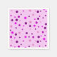 Pink and purple polka dots in various shades and sizes is printed on custom paper napkins. The background colour of light pink can be customised. They are a fun choice for birthdays, baby showers, and any pink themed celebration. Thank you for shopping at CherylsArt on Zazzle.
