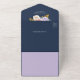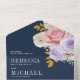 Pink Purple Roses Floral QR Code Navy Blue Wedding All In One Invitation