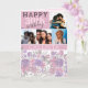 This elegant and pretty birthday photo card is perfect for any special woman in your life. It features hand-painted pink, purple, and light sage green flowers and leaves on top of a simple white background with four customisable photos on the front of the card and rose pink colour blocks with the message, "Happy (Age) birthday, (name)." On the inside are four more pictures and a happy birthday message. It's artsy, girly, country, cute, unique, and trendy.