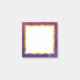 Small square sticky notes with a fancy and elegant design. The background composed of pink and purple sparkling glitter gemstones. Trendy and feminine vibe. A square with a faux-gold-foil border layered over top.